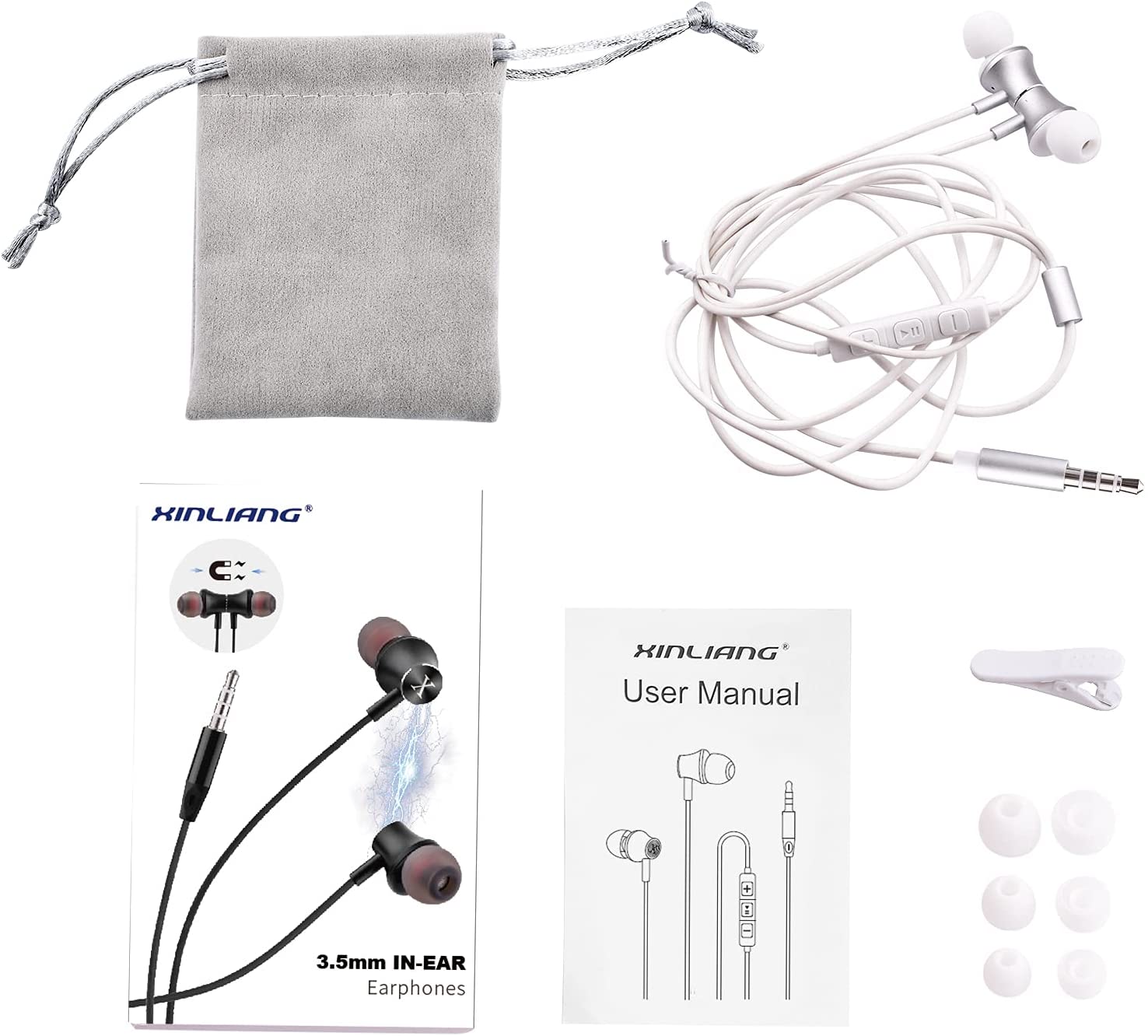 Earphones XINLIANG Wired Earbuds with Microphone & Volume Control in-Ear Headphones with Magnetic, Bass Driven 3.5 mm Earbuds for iOS and Android Smartphones, Laptops, MP3, Gaming, Walkman (Black)