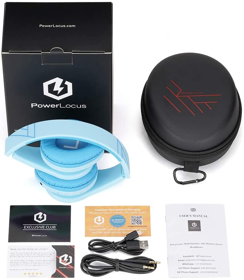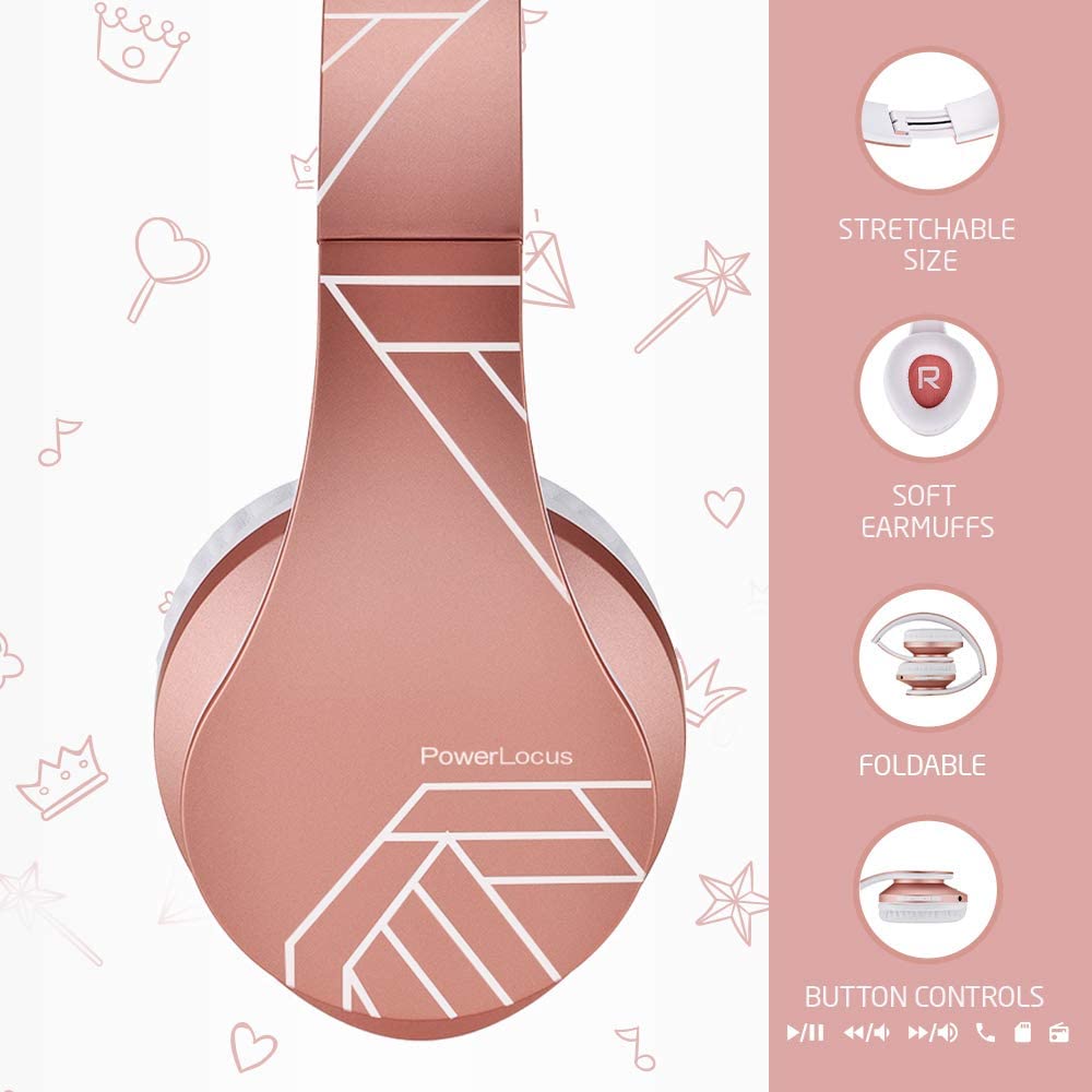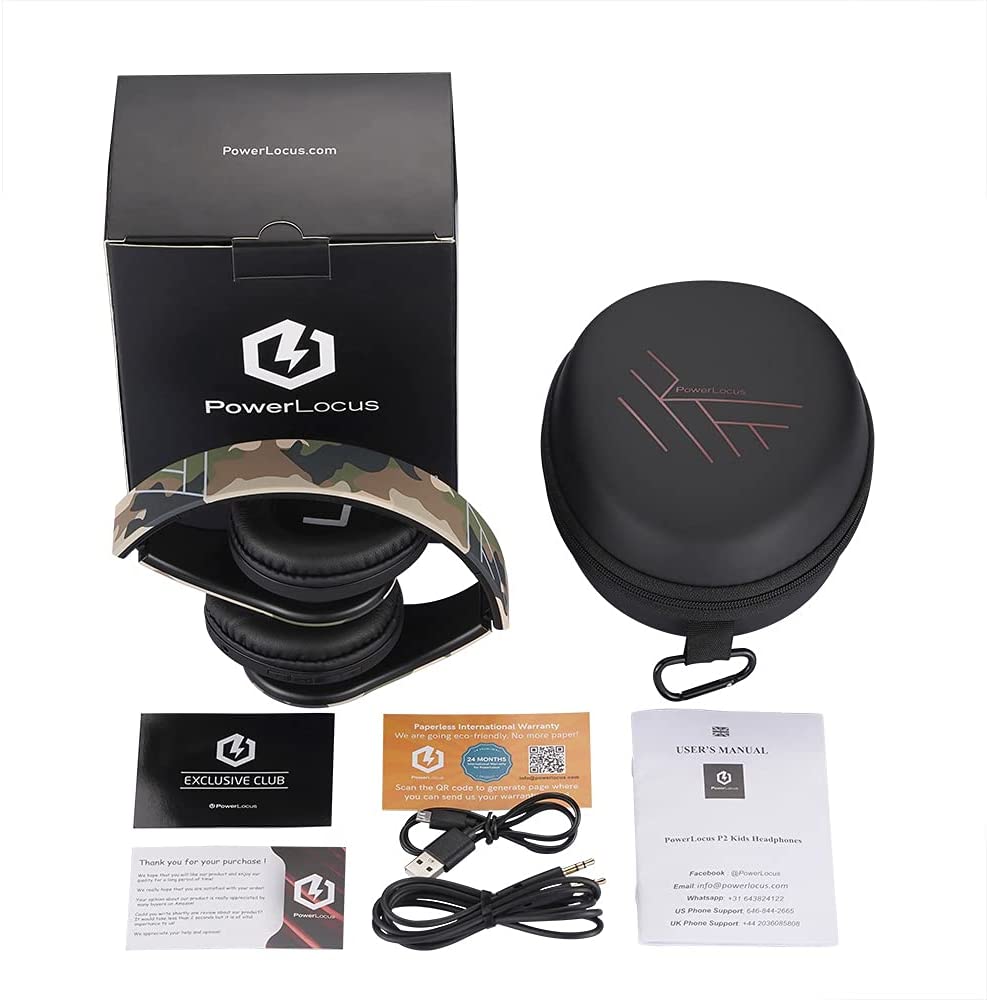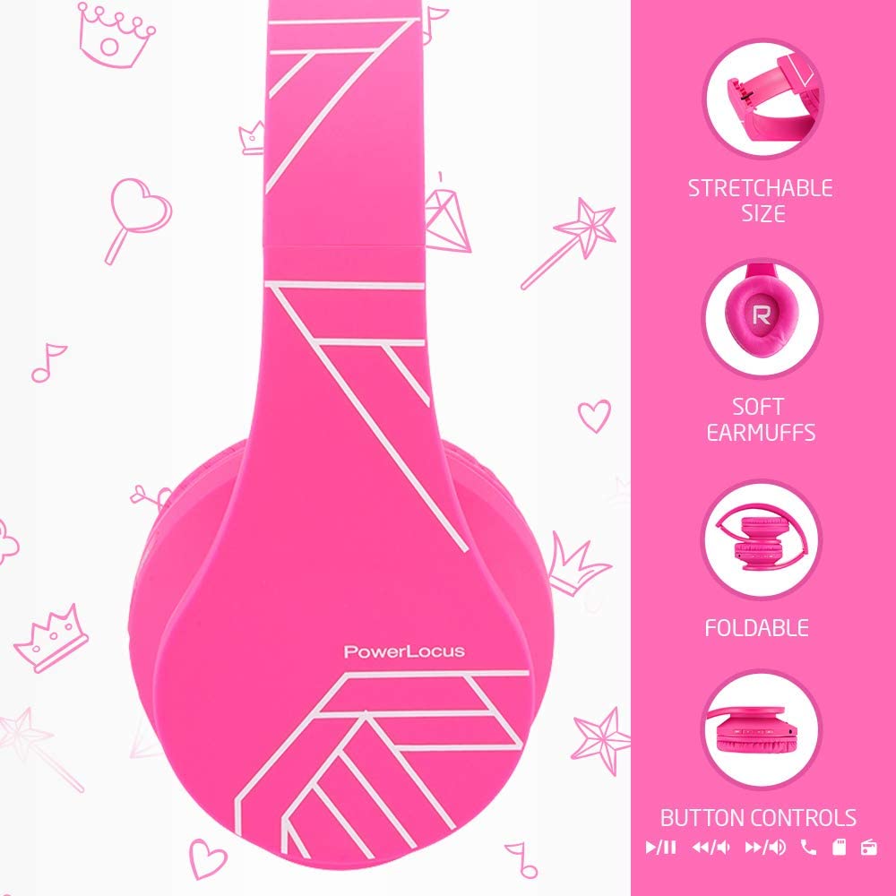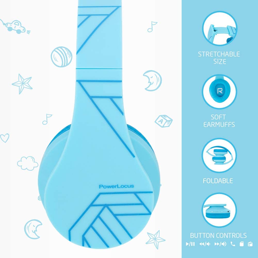 PowerLocus Kids Headphones Over-Ear, Bluetooth Wireless Headphones for Kids,with Microphone, Safe 85DB Volume Limited, Foldable with Carry Case, Audio Cable, Micro SD mode for Online Classes,PC,Phones