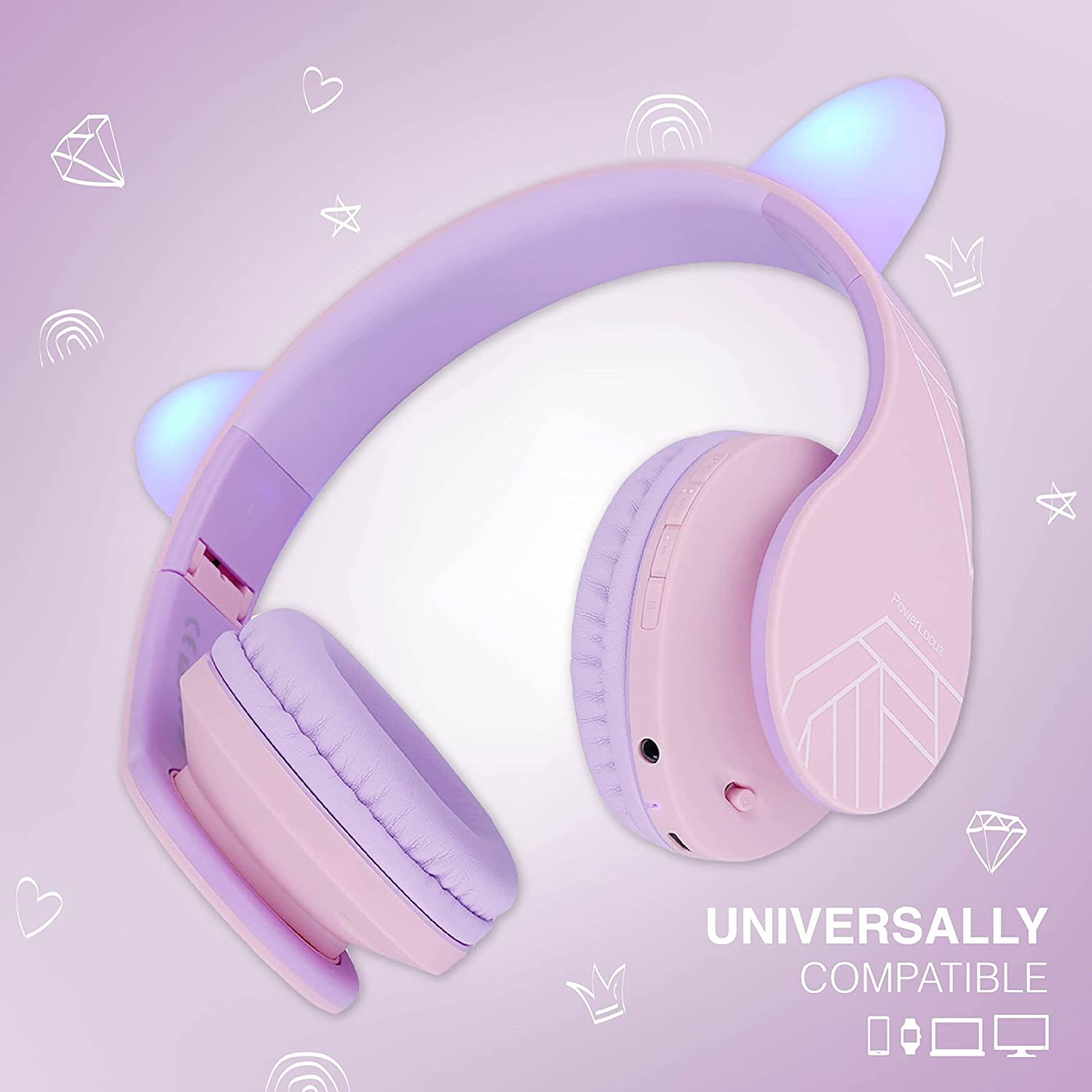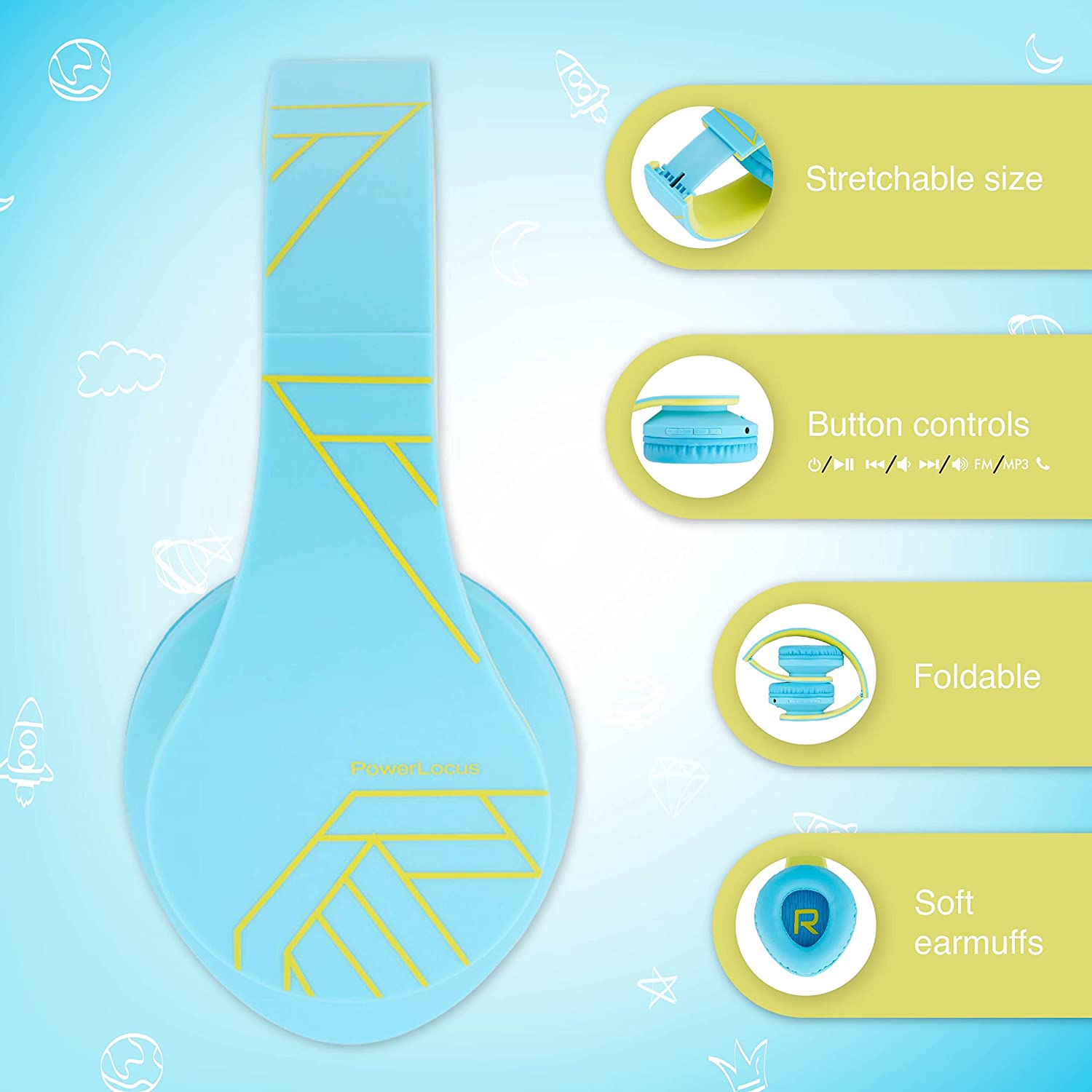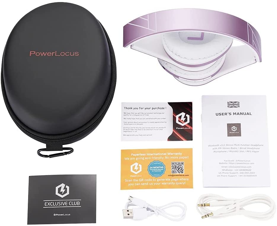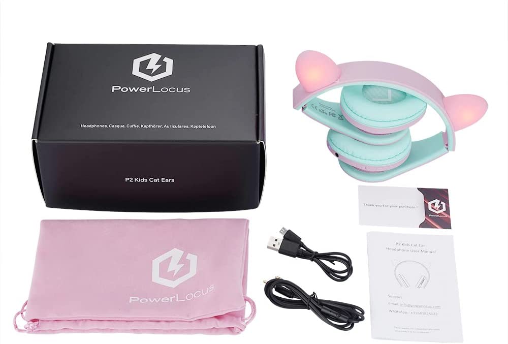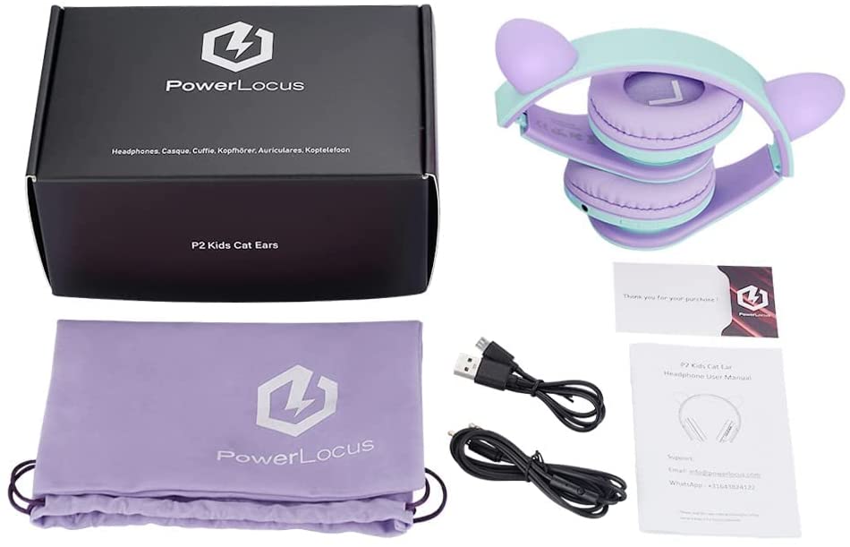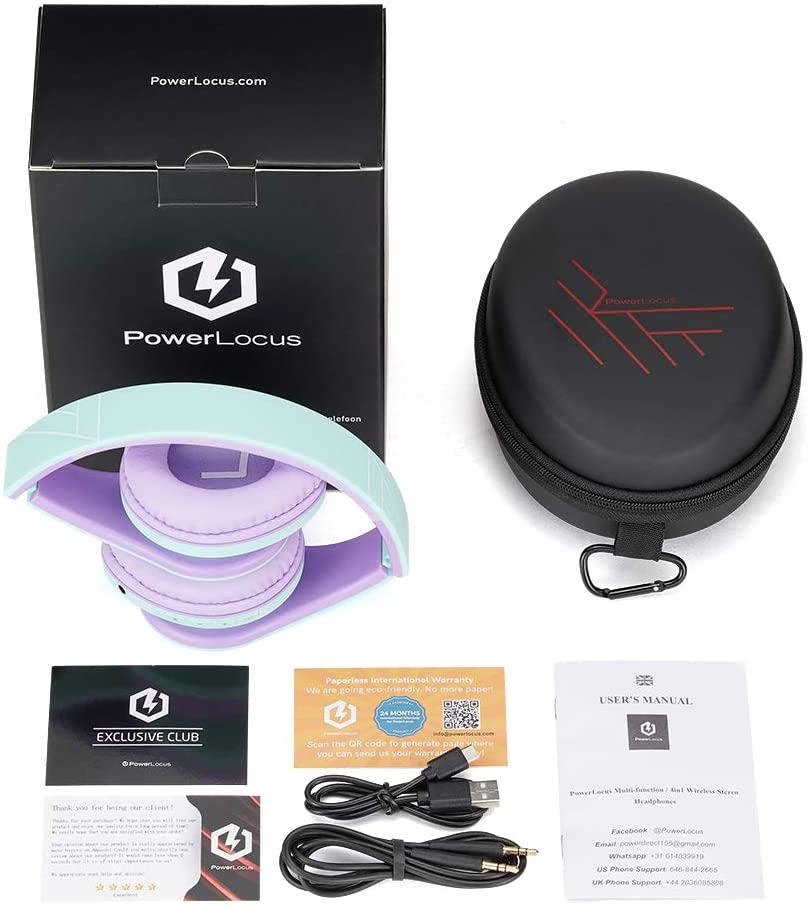 PowerLocus Kids Headphones Over-Ear, Bluetooth Wireless Headphones for Kids,with Microphone, Safe 85DB Volume Limited, Foldable with Carry Case, Audio Cable, Micro SD mode for Online Classes,PC,Phones