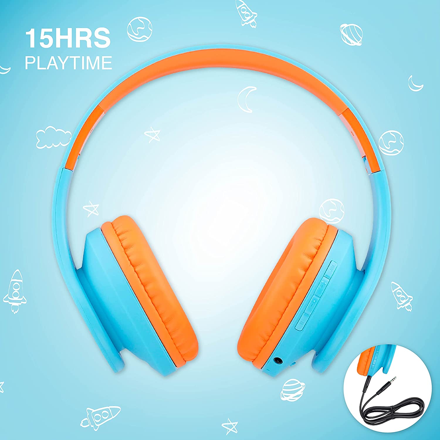 What makes these kids headphones to stand out? Huge Battery playtime – 15H Playtime and Limitless Cable mode