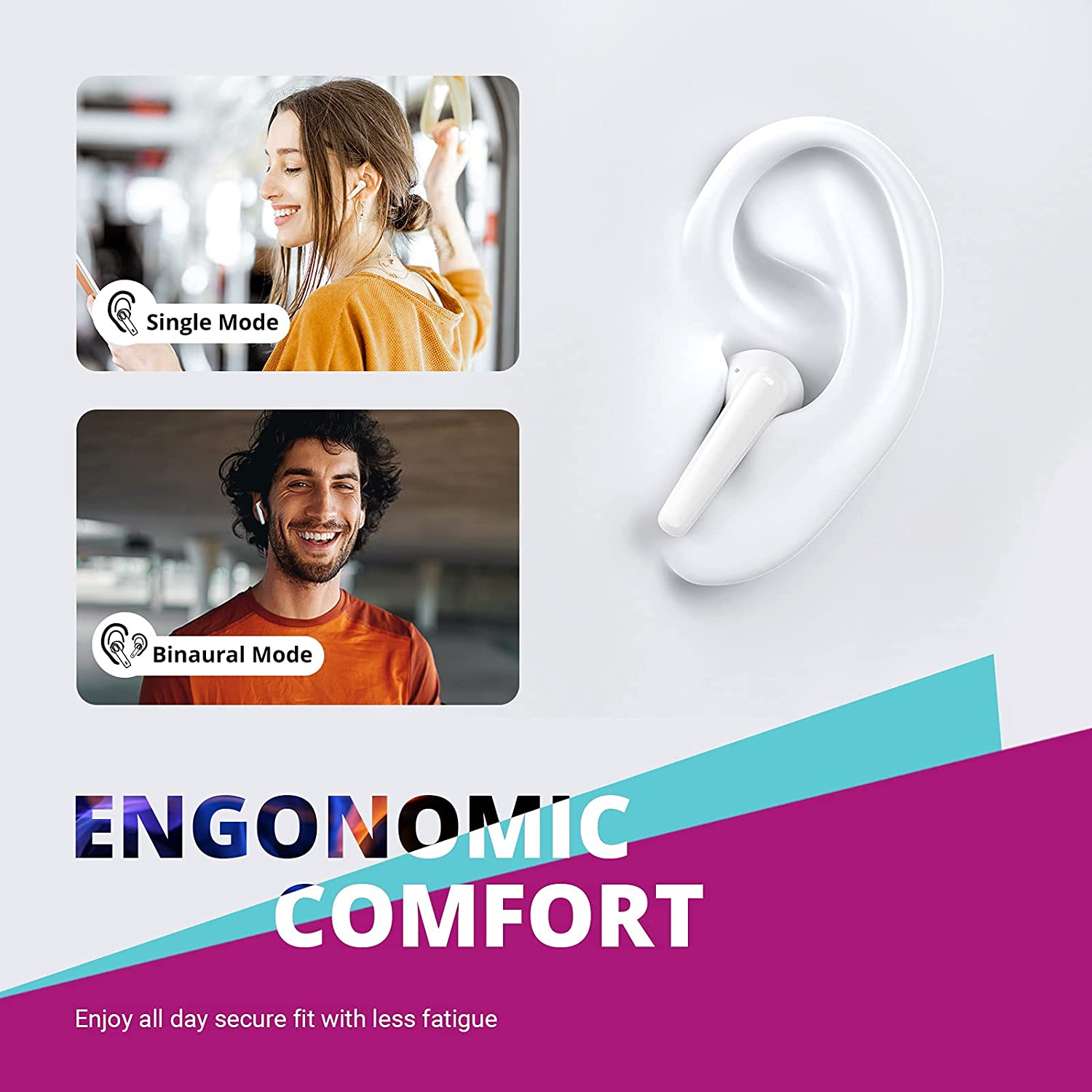 One-step Pairing Simply take them out of the charging case, put them in your ears. Geek wireless earbuds are automatically on and always connected-immersing you in rich, high-quality sound. Synchronous Connect Tech Thanks to the role switch feature, two earbuds connect to the phone in both directions, instead of separating the Master and Slave earbud like traditional. Save time and energy pairing the earbuds to your phone, flip between single earbud and couple earbuds mode in a second. High-end Smart Touch Play/Pause – Tap Once Answer Call/End Call – Tap Once Reject Call – Hold 2 seconds Previous Track – Double tap L Next Track – Double tap R Voice Assistant – Tap 3 times Decrease Volume – Touch and Hold L Increase Volume – Touch and Hold R Clear Voice For Phone Call Call noise reduction technology effectively blocks out background noise and accurately picks up your voice, so you’re heard naturally and loudly on the other end without interference even in a noisy environment. Microphone installed on each earbud can pick up your voice more clearly and reach the best call quality. Ergonomic Fit Not all ears are made the same, so not all earphones are created equally. Geek true wireless earbuds offers a semi-in-ear design with the most comfortable 105В°in-ear angle for all day ergonomic comfort. Your ears won’t feel sore after hours of wear. IPX8 Waterproof Keep playing, running, and dancing in any conditions. Liberty Neo wireless earbuds effortlessly resist sweat and rain, and can even be rinsed clean under the tap.